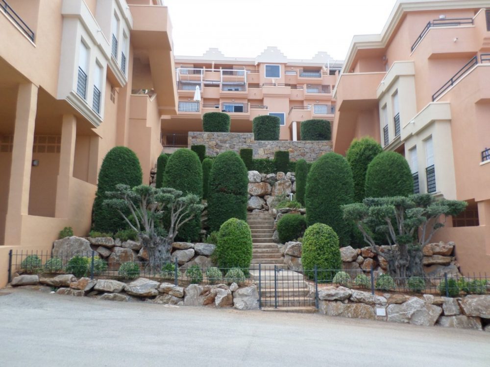 Das Apartment ist Teil des Wohn-Aparthotels Jacaranda in La Sellas Hanglage. Der komplett umfriedete Komplex wurde 2007 fertiggestellt und verfügt über einen beeindruckenden Poolbereich mit Umkleideräumen und Toiletten, eine Rezeption und eine kleiner Fitnesssaal.