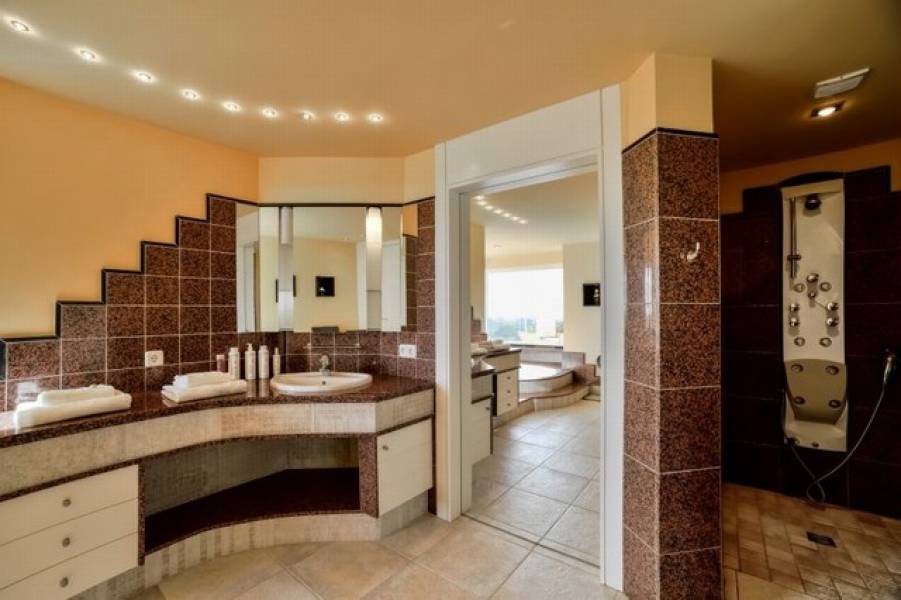 Villa, Möbliert: Verhandelbar, Eingerichtete Küche, Parkplatz: Garage, Pool: Privat, Garten: Privat, Ausrichtung SüdenAussicht: Atemberaubend, Berge, Panorama, Meer.Merkmale Klimaanlage warm/kalt, Qualitätsbau, Zentralheizung, Eingerichtete Küche, Überdachte Terrasse, Freistehende Villa, Einfache Gartenpflege, Einbauschränke, Garage, Einwandfreier Zustand, Luxus-Einbauten, Bergblick, Parkplatz, Ruhige Lage, Meerblick.
