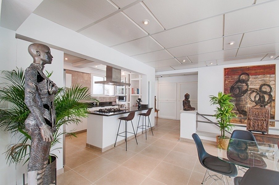Outside there are plenty of places to sit and relax: On the pool terraces there is large chill out area with a barbecue, there is a spectacular roof terrace, a very cozy terrace accessible form the living room and a garden where you can keep wandering through.