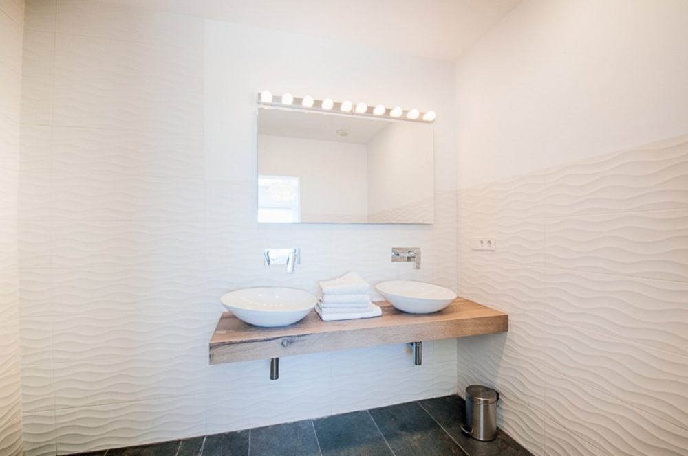 Upstairs there are two more spacious bedrooms, both with en-suite bathrooms and a large terrace with Jacuzzi.