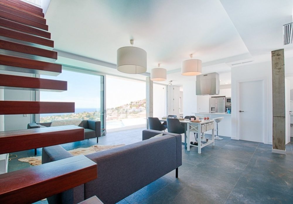 This modern villa is located on the edge of the nature reserve Granadella, and has an unbeatable view of this nature and has a panoramic sea view.