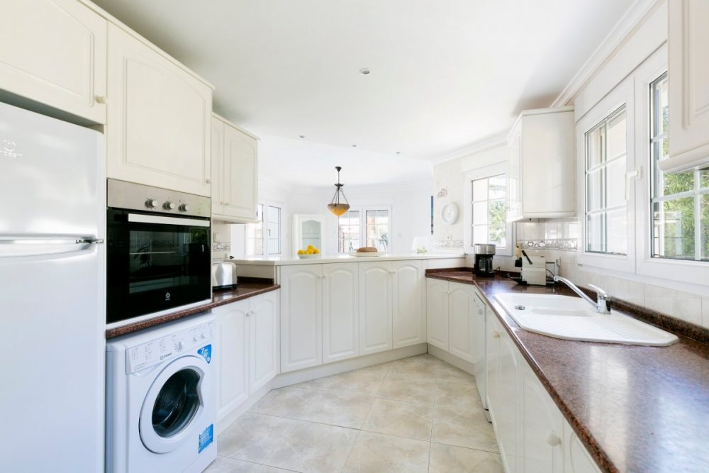 Elegante und komfortable Villa, ideal für Familien, in Santa Llucia, Denia, bestehend aus 2 Etagen mit Fussbodenheizung und grossem privaten Pool. Das Grundstück besteht aus einem wunderschönen gewachsenen Garten mit Rase, Palmen, verschiedenen Obstbäumen und Blumenstauden, sowie einem grossen überdachten Parkplatz. Die Poolterrasse mit gemauertem Grillbereich, bietet einen überdachten Essbereich, ein mit Wein bewachsene Pergola und eine Aussendusche. Das Grundstück ist komplett umzäunt, bietet Privatsphäre und ist für Kinder zum Spielen ideal. Alle vier Schlafzimmer mit Klimaanlagen sind suites mit eigenem Badezimmer. Die Schlafzimmer auf der oberen Etage verfügen ausserdem je über eine private Terrasse mit Ausblick auf die Burg von Denia und das Bergmassiv des Montgos. Der Sandstrand La Marineta und auch Las Marinas kann in jeweils 5 Autominuten erreicht werden, ebenso das Zentrum von Denia mit vielen Geschäften und Einkaufsmöglichkeiten und der Sporthafen La Marina und Club Nautico. Kontaktieren Sie uns für mehr Information oder eine Besichtigung für diese gepflegte Villa, die sich auch ideal für eine Ferienvermietung anbietet.