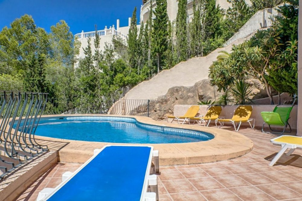 Gepflegte traditionelle spanische Villa in der Golden Valley Urbanisierung, Moraira. Das Haus ist charmant geteilt mit einem hellen offenen Sitz- und Esszimmer und einer Küche mit Washküche im Erdgeschoss. Im Obergeschoss befindet sich ein gemütliches Studio mit Schlafzimmer, Bad, separater Toilette und Terrasse mit schöner Aussicht. Im Untergeschoss befinden sich 2 Schlafzimmer, 2 Bäder, Gäste-WC und Zugang zur großen Poolterrasse. Von der beleuchteten nierenförmigen Pool übersehen Sie das Tal und einen großen Teil der Costa Blanca Nordküste.